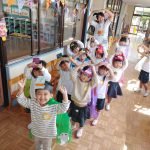 子どもたちが楽しみにしていた、ハロウィンパーティー!自分たちで作ったマントと帽子のお面をつけて出発! 輪投げコーナーです。おばけとモンスターの2種類の輪投げを順番で楽しみました。 輪投げが入ると「やったー! […]