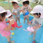 暑い毎日が続いていますね! 「今日 水遊びマル◎だよー!」(水遊びカードにマルついてるよ) 「晴れだからできるね」と水遊びが大好きな子ども達。 プールの中でゾウさんジョーロを使って水を「ジャーー」と流したり カップにくん […]