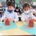 土粘土の感触を楽しみながら、劇の発表会で自分が演じた役を表現しました。 「つめたーい!」「固いー!」普段遊んでいる油粘土との違いを感じながら顔や手などを引っ張り出していましたよ。 「うさぎの耳つけよっと!」「ドレスどうや […]
