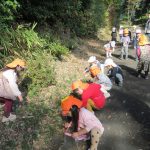 鞄をかけて友達と仲良く手を繋いで山探検へ出発! 山の中は、秋の落とし物がいっぱい!初めて通る道にドキドキ・ワクワクな子ども達です。 坂道に着くと、すぐにどんぐりや落ち葉・木の実を「みーつけたっ!」と嬉しそうに笑みを浮かべ […]
