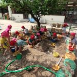 プールがない日に泥んこをしました。最初は少し離れたところから友達の様子を伺う子もいましたが、楽しいということがわかると満面の笑みで泥遊びが始まります。 大きな山を作ったよ!! 川もできた~!! 溜まった水のなかに寝転がり […]