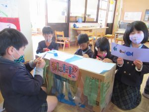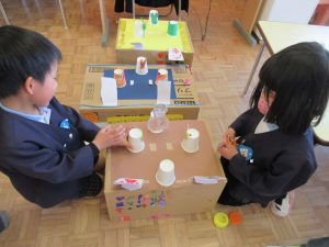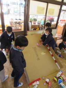 グループのみんなで協力し合って準備を進めていますよ。ゲームが出来上がったら、23・24日に保育園の友達や先生を招待して楽しむ予定です!自分よりも小さな友達が笑顔いっぱいの時間となるように、どんなお兄さん、お姉さんぶりを発揮してくれるか楽しみです!