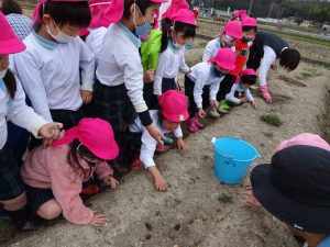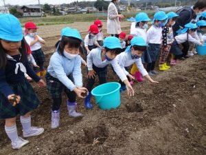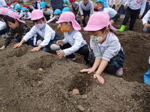 地域の方の御協力のもとみんなでじゃが芋の種芋を植えをしました。