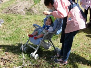 戸外遊びをはじめ、園外へ散歩へ行って春を見つけたり、