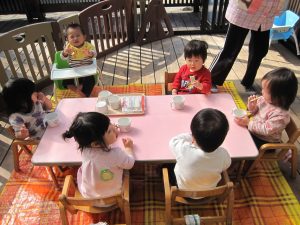 テラスでおやつを食べたりもしています!