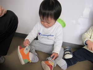 靴を履こうと頑張る姿もありますよ!