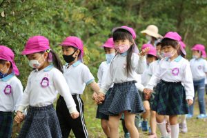 まず、年中組の時にみんなで植えたじゃがいもの苗をなかよしファームへ見に行きました。