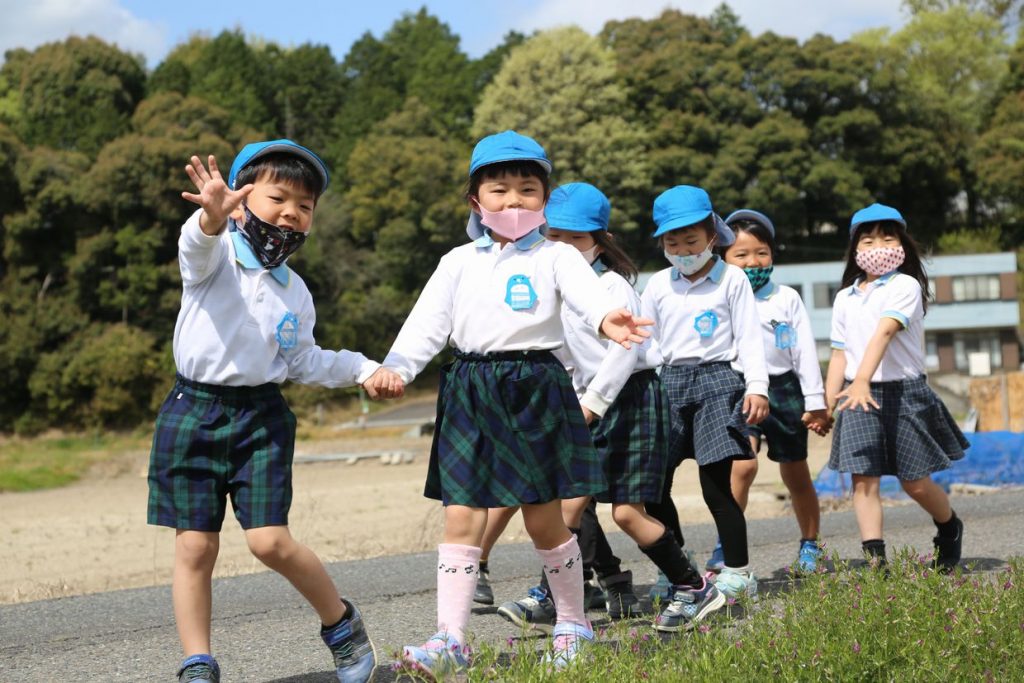 年長になっての初めての散歩!新しいクラスの友達と手を繋いで笑顔で出発しましたよ。