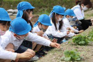 じゃがいもがもっと大きく育つよう、近くに生えた雑草を少しだけみんなで抜きました。