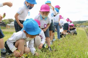 農道にはたんぽぽやナズナなど春の植物がたくさん!友だちと春見つけを楽しみましたよ。