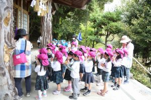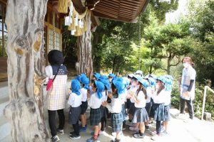神明神社へ行き、みんなで手を合わせて「1年元気に楽しく過ごせますように!」