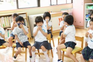 初めて見る子も多く、よく見たり、匂いを嗅いだりした後は、1つ食べてみました。