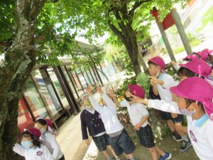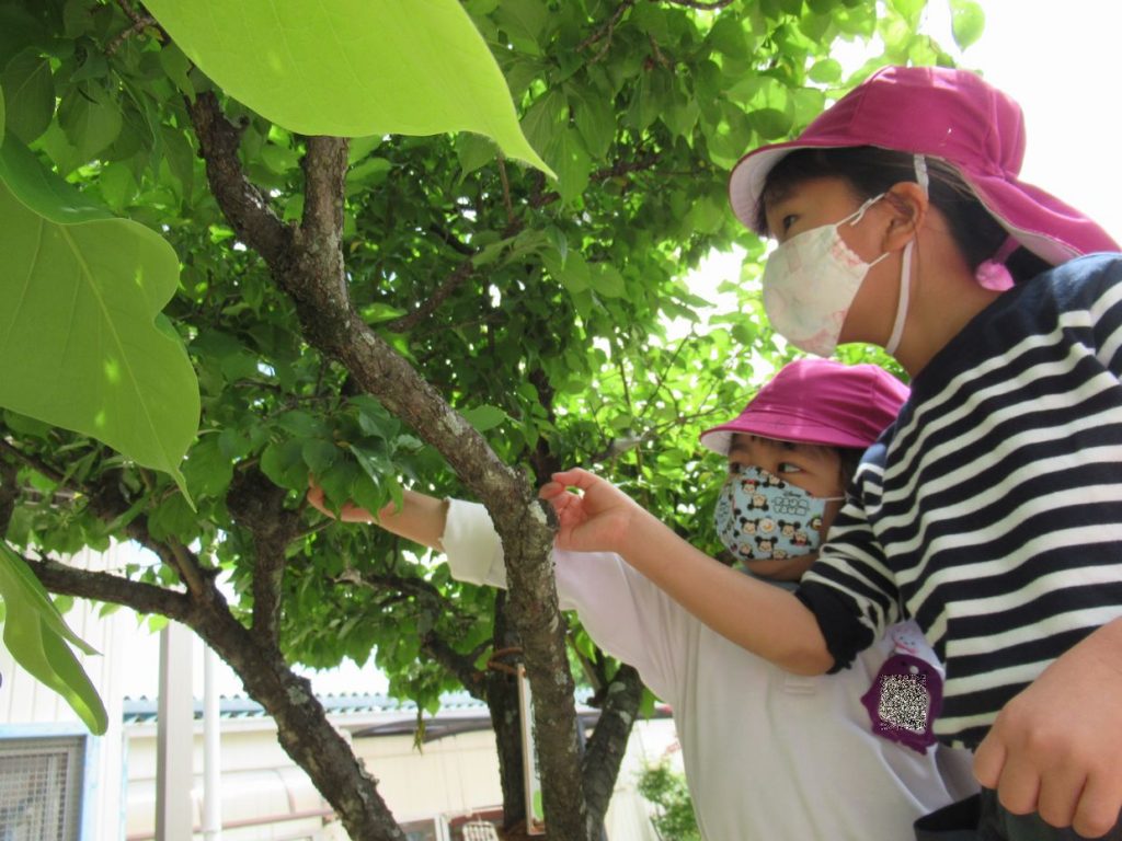 あるかな?と見上げると「あった!」「あそこにあるよ!」と見つけるのが上手な子ども達。