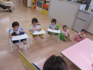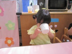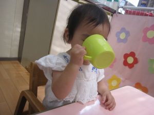 大好きな給食・おやつの時間!自分でコップを持って飲めるようになったよ!