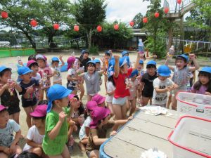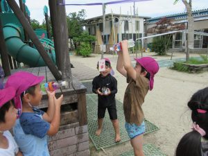 今度は水鉄砲で何をして遊ぼうかな?いろいろな水遊びをみんなで楽しんでいきたいと思っています。
