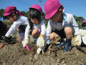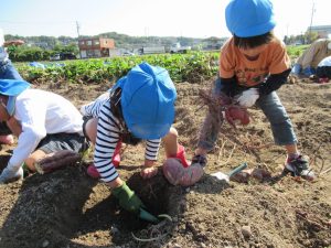 天気の良い日になかよしふぁーむに行き、さつまいも掘りをしました。