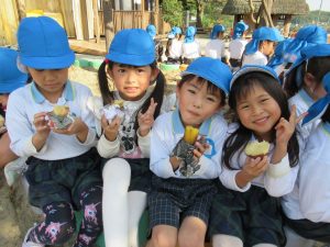 さつまいもの収穫祭。ふかし芋、焼き芋、お芋の餃子とたくさん食べることができ、喜んでいましたよ。