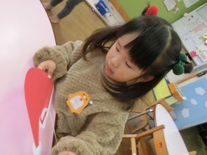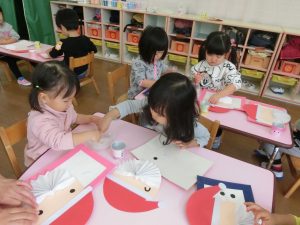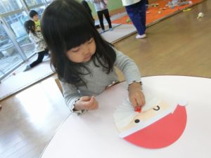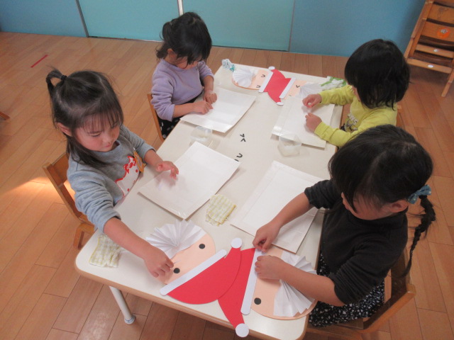 クリスマス製作では“ サンタさん ” の顔を作りました。