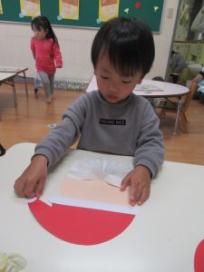 仕上げに赤色の花紙を掌で丸めて、完成~!