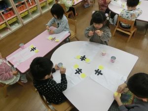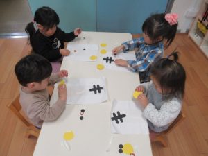 「出来た!」「トラさんかわいい」と遊ぶのをワクワクする子ども達!