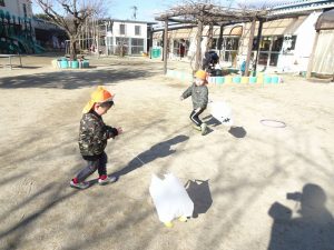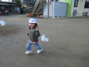 日本の伝統的な正月遊び‘‘凧揚げ”を友達や保育士と一緒に楽しみました!