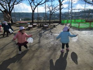 皆で楽しく作ったあとは、園庭で思いっきり走って遊びました。