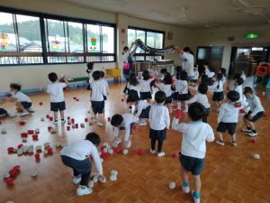 運動会の玉入れに向けて、コツコツ楽しく練習中ですよ。