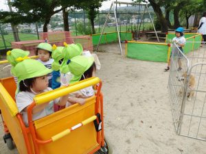園庭に出るとたくさんの動物にジャンプをして大喜び!