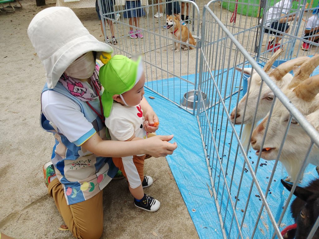 ヤギさんが勢いよく食べるのに驚きながらも”食べてくれた!”と喜んでいましたよ。