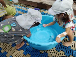 氷あそびなど夏ならではの遊びをのびのびと楽しみ、暑い夏を乗り越えましたよ。
