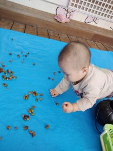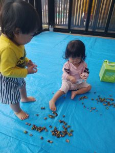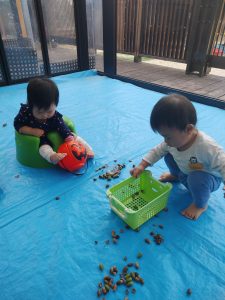 秋といえば、どんぐり!!どんぐりを見せると「あ!」ととても嬉しそうですよ。