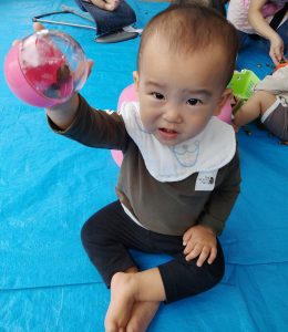ここにガチャガチャの蓋あるよ!と持ってきてくれています。仲良く遊ぶ姿がたくさん見られ、微笑ましいです。