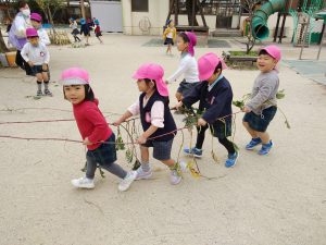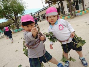 前日、なかよしふぁーむからさつま芋のつるを持ってきて遊びました!