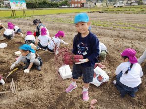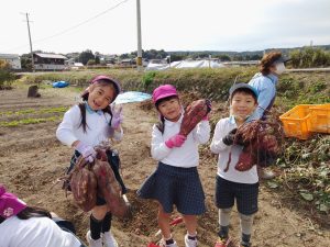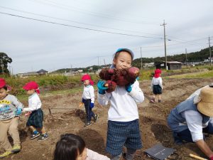 ご家庭に持ち帰ったさつまいもでどんな料理を作ってもらうのか楽しみにしていた子どもたち!「こんなに大きいから家族みんなの分あるねー」と嬉しそうに持ち帰っていましたよ。また、園でのさつまいもパーティーもとっても楽しみにしています。家でもたくさん話をしてくれることかと思います!