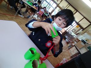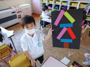 あっという間に形を切って、「先生、切れたよ。」「簡単やった。」と、とても嬉しそうに見せてくれました。