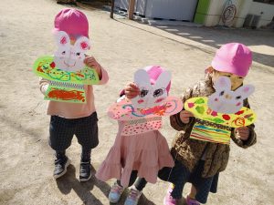 今年の干支はうさぎ!うさぎのやっこさんの凧を作って楽しみました。
