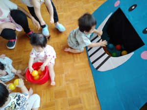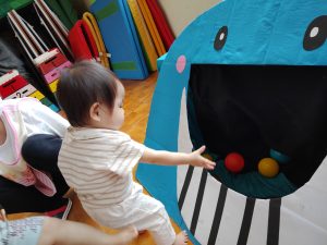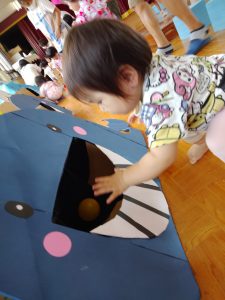 クジラの口にボールを一生懸命入れる姿が見られましたよ♫