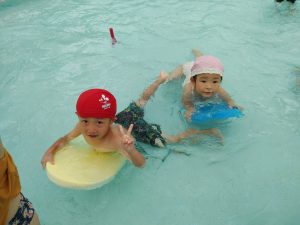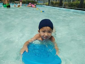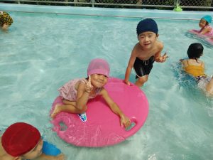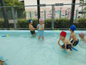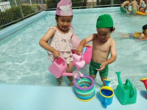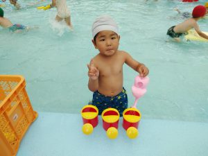 「今日はプールの日だね〜!」「やったー!」「何番に入る?」とどの子もとても楽しみにしていますよ。