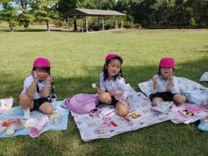 皆で大きな輪を作り、向き合って楽しみながら食べました。