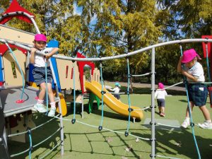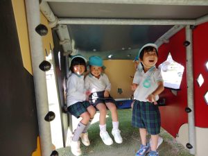 いつもとは違う遊具に大興奮で、上手に紐の所を渡ったり、椅子に皆で座って家族ごっこをしたりしてとっても楽しそうな子ども達でした。