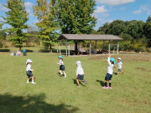 秋の自然に触れて、たくさんの生き物を見ることが出来、遊具でも友達と仲良く遊び楽しんでいる姿がありましたよ!