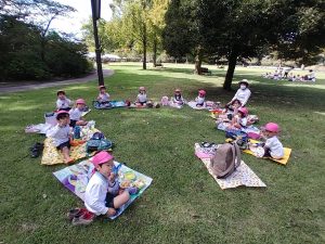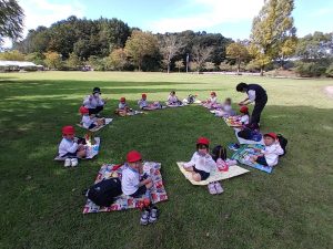 食べたあとは名残惜しい顔をしている子もいましたが、保育園へ帰りお昼寝。たくさん遊んでぐっすり寝て大満足の1日でした。愛情一杯のお弁当ありがとうございました。
