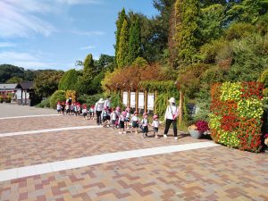 入場門をくぐると「わぁ~花がいっぱい♪」「ここ広いね~!公園もある!」と目をキラキラさせていましたよ。友達と手を繋ぎ嬉しそうに停留所まで歩きました。
