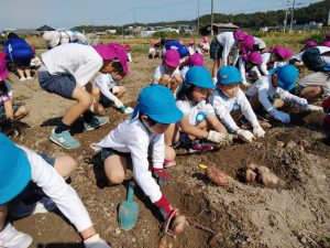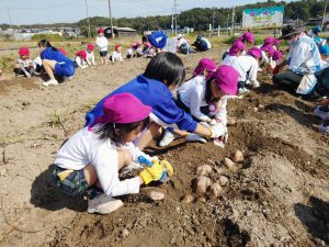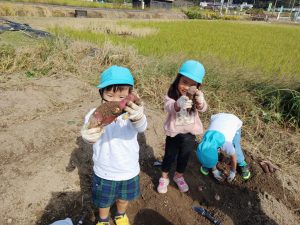 子ども達はたくさん掘れるかワクワクドキドキ!大きなお芋になっているかな?