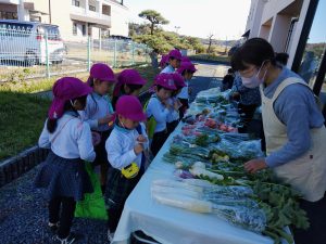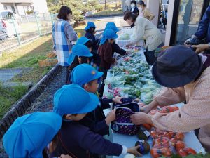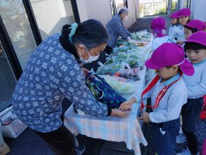 「にんじんください」と地域の方に自分から話したり見たことのない野菜があると「これなに?」と聞く子もいましたよ。