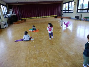初めてのホールでの活動でしたが、夢中で楽しんで体を動かす子どもたちに成長を感じましたよ。