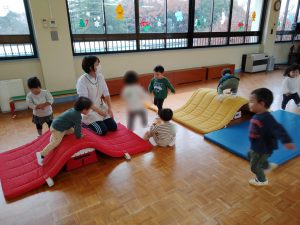 さまざまな動きを取り入れた運動遊び、これからも取り組んでいきます。