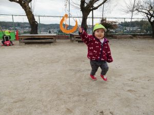 凧を揺らして見せると、”クルクル〜”と揺れる様子を見て「わぁ〜!」と歓声が上がりました。”はやくあそびたい!!”そんな気持ちが伝わってきましたよ。