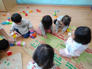 シール貼り遊びが大好きな子どもたち。集中してどんどん貼っていきましたよ。