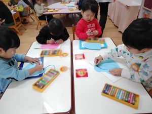 目はどこかな??と考えながら取り組んでいましたよ。友だち同士で「そこじゃない?」「こっちかも!」と教え合う様子もみられました。